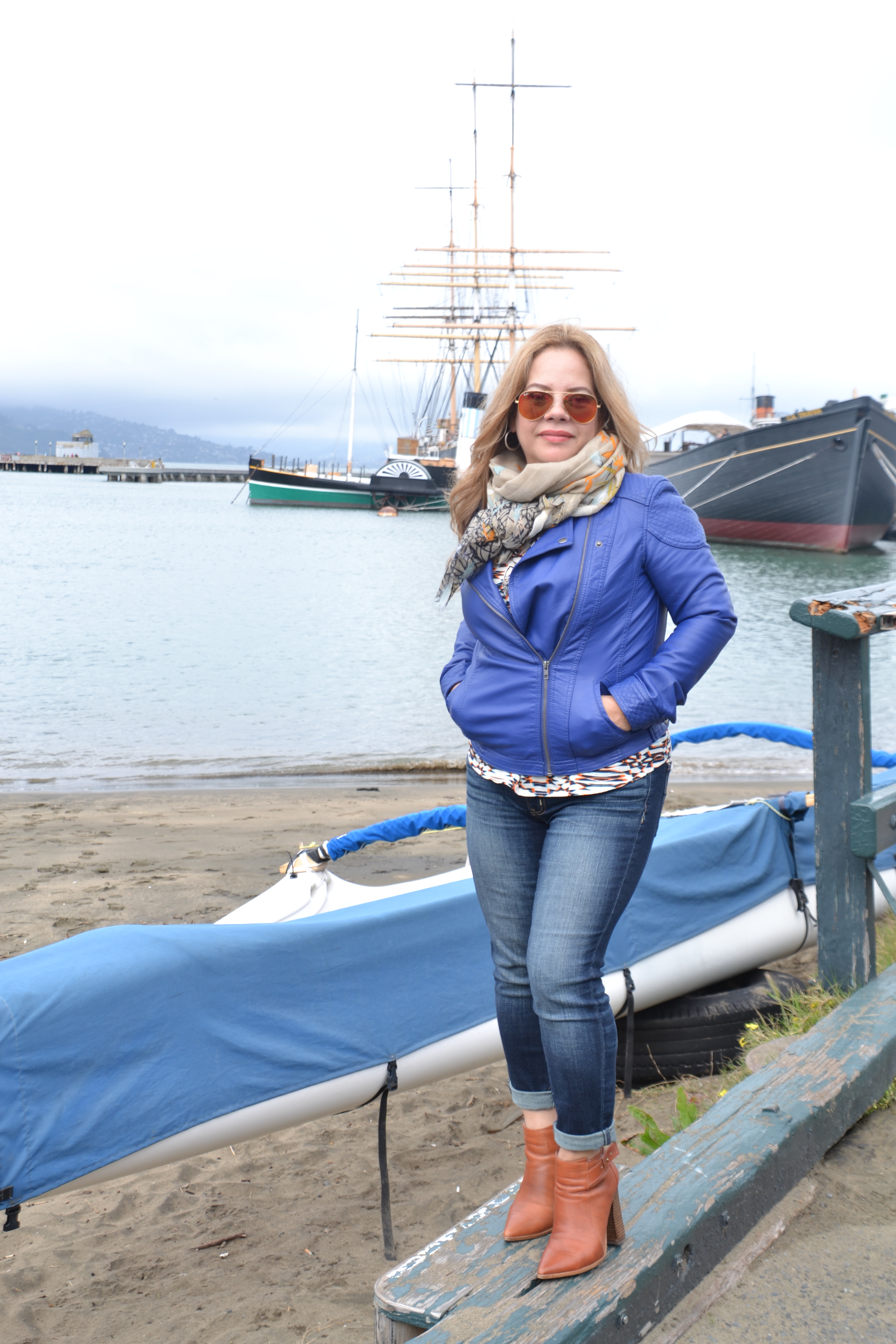 I decided that lavender was going to be my go to color for my shoot and it definitely did not disappoint. The color felt fresh & feminine .Perfect for Spring! The faux fur was a Christmas gift I was wanting to use but waiting for the perfect occasion like this. My pencil dress was amazing with it’s own story of sail boats surrounded by the ocean. My periwinkle heel sandals and sunnies were the perfect final touch that completed my birthday mood.
